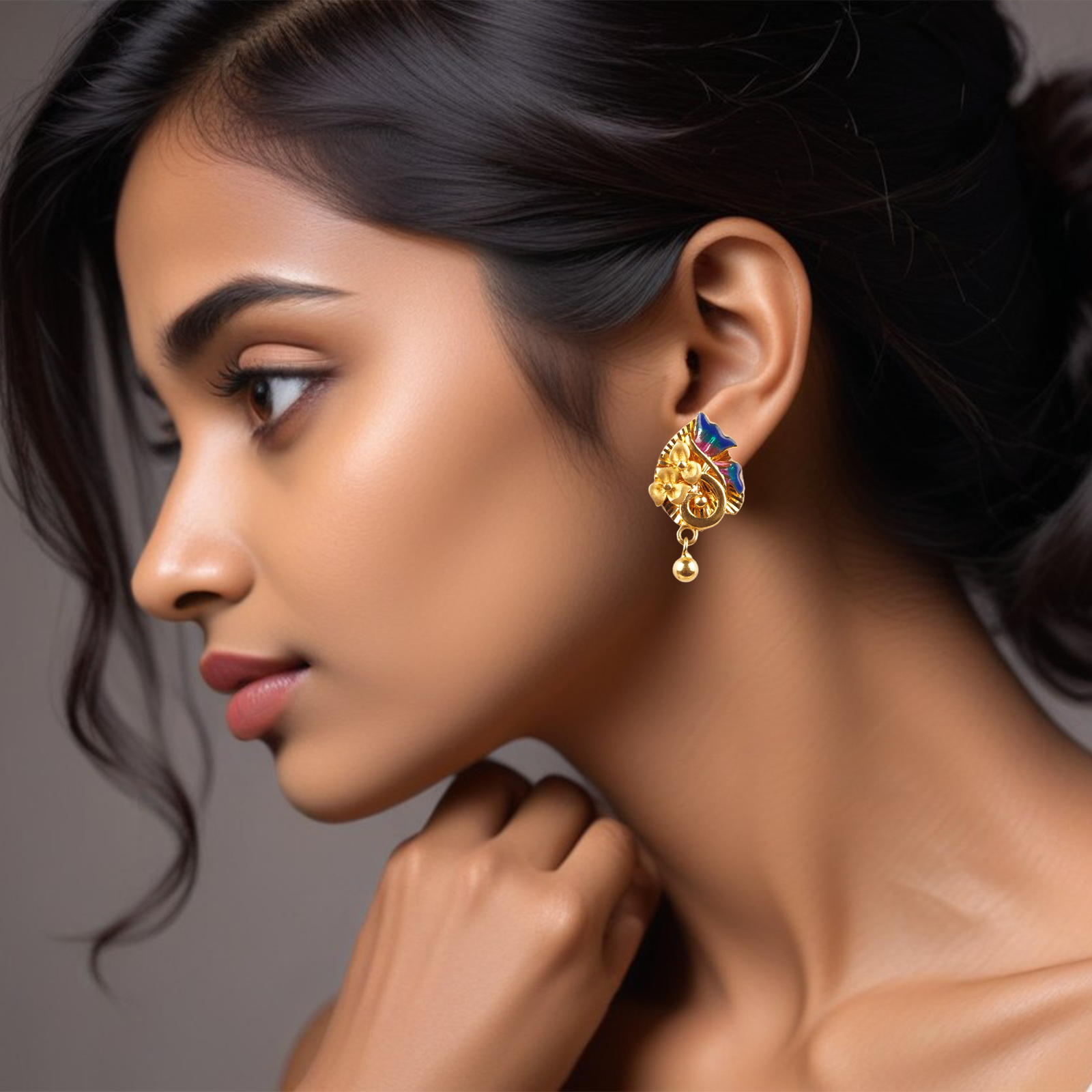Bold and radiant, these gold drops are crafted with intricate patterns and a brilliant finish. With a weight of 4.33 gm, they offer a noticeable yet elegant touch to bridal wear, festive ensembles, and traditional attire. The craftsmanship speaks of cultural pride and timeless elegance, making every celebration memorable.