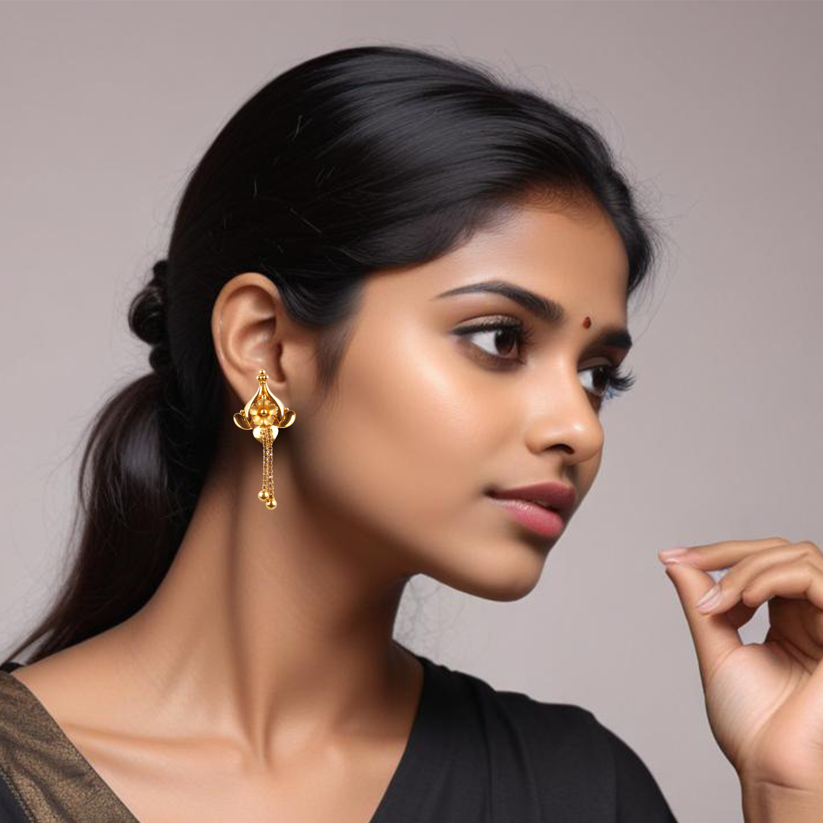 Lightweight gold hangings offering delicate beauty for daily ethnic charm.