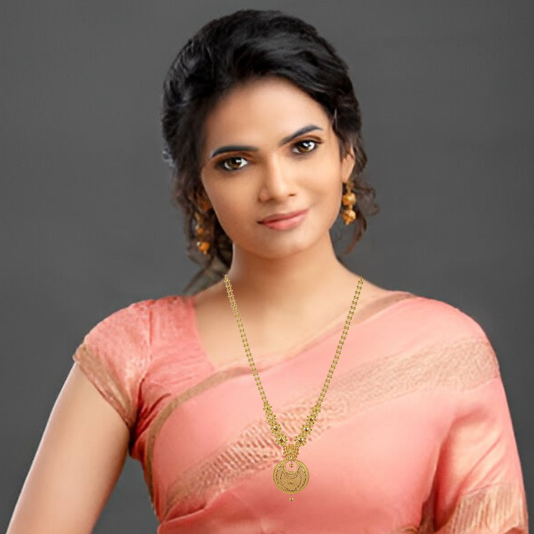 Refined long necklace offering radiant beauty and cultural charm for ethnic celebrations.