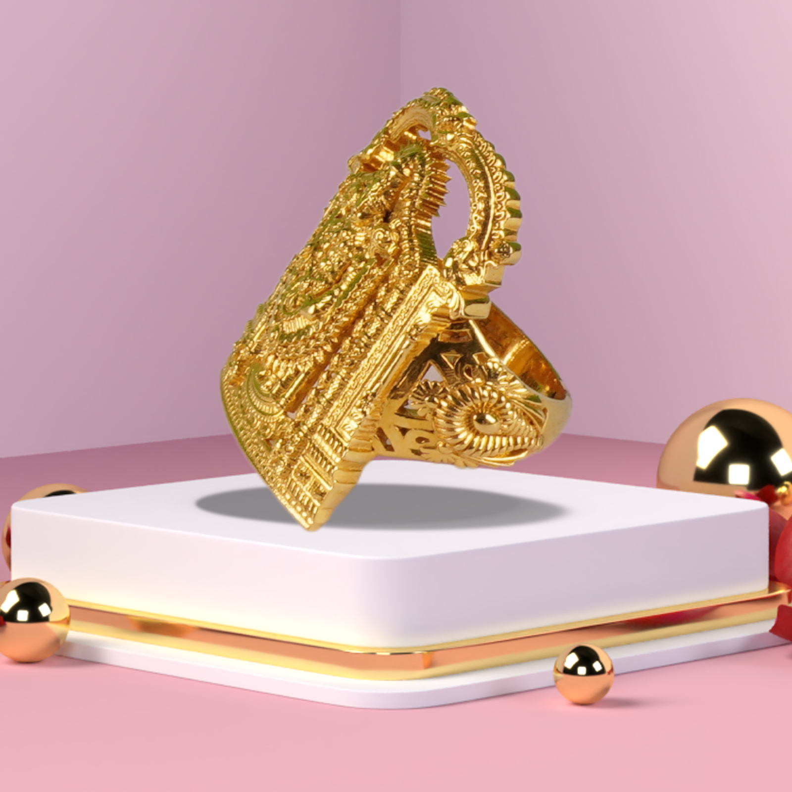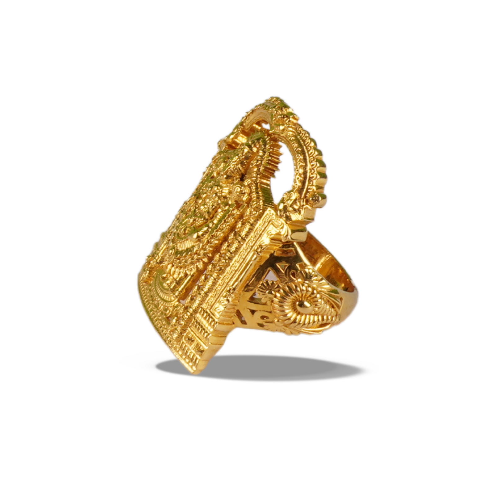 Regal gold ring designed for bold ethnic fashion and statement styling.
