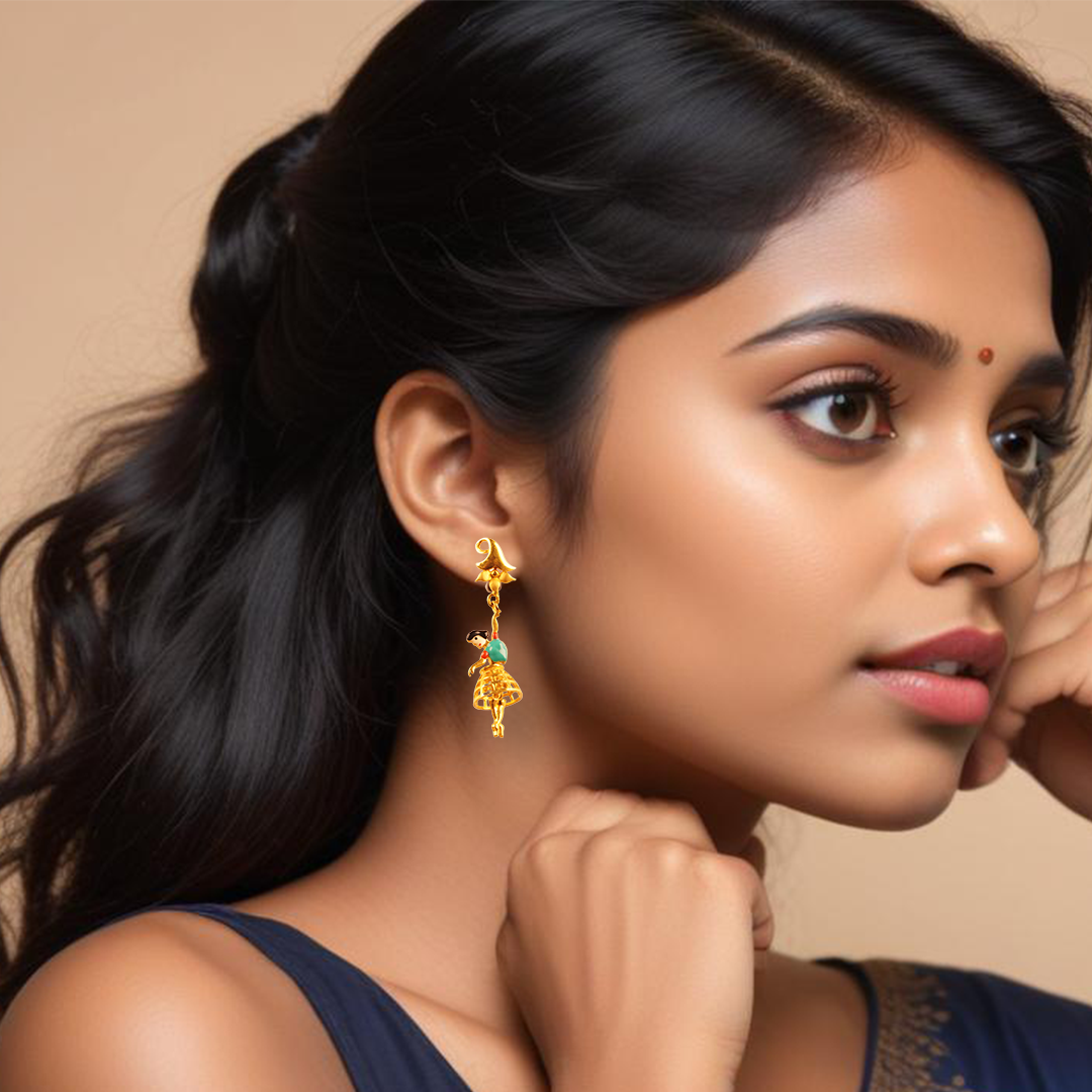 A light 5.2 gm brings subtle brilliance and classic detailing to these studs. Ideal for adding a graceful touch to casual ethnic outfits, poojas, and small family celebrations where heritage charm brightens the moment.